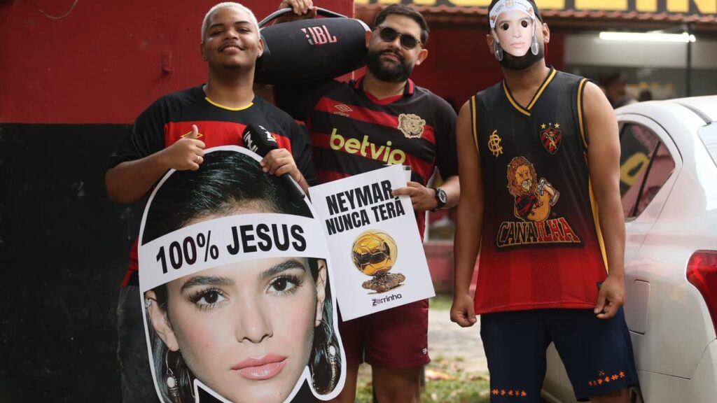 Torcida do Sport faz provocação a Neymar com máscaras de Bruna Marquezine